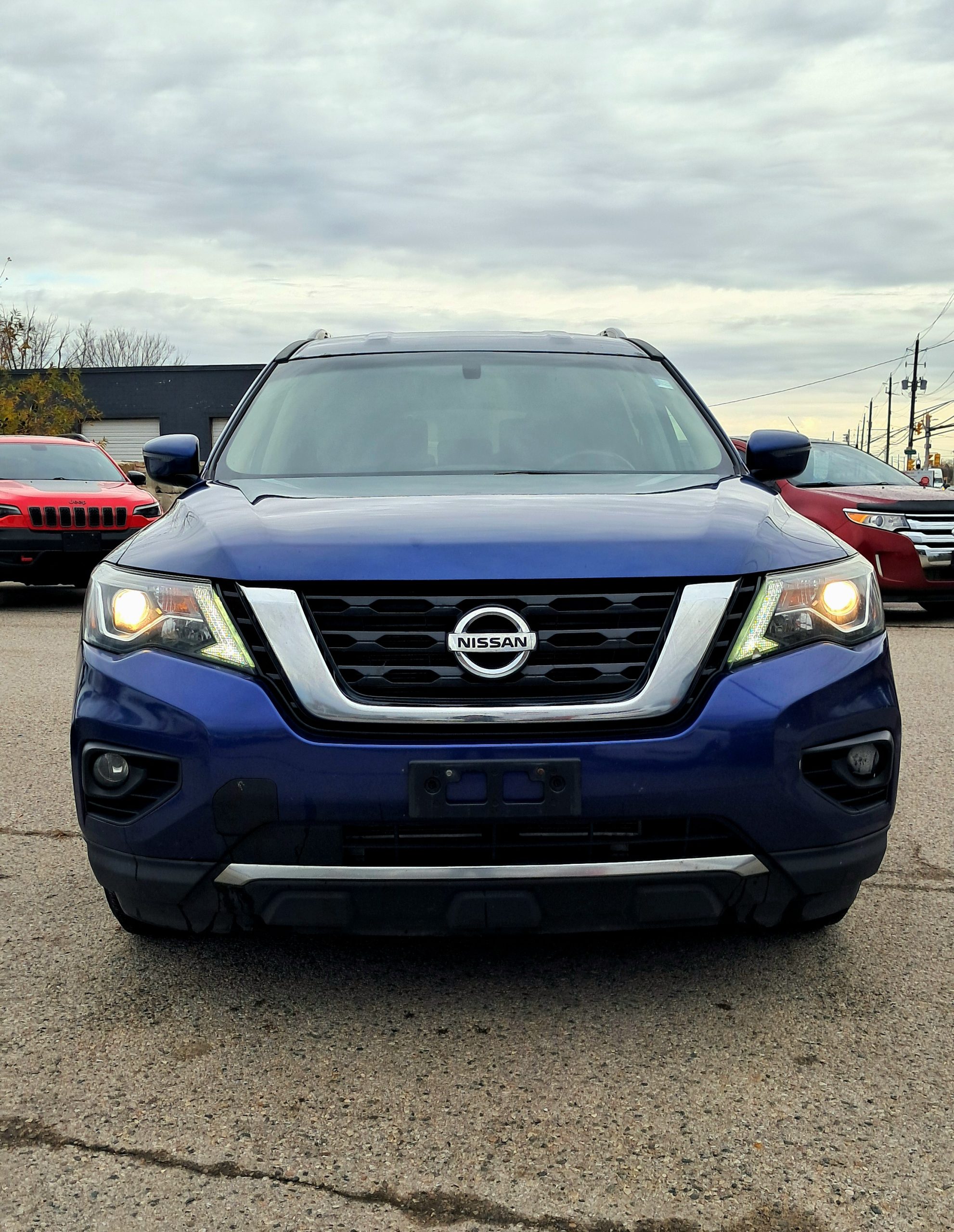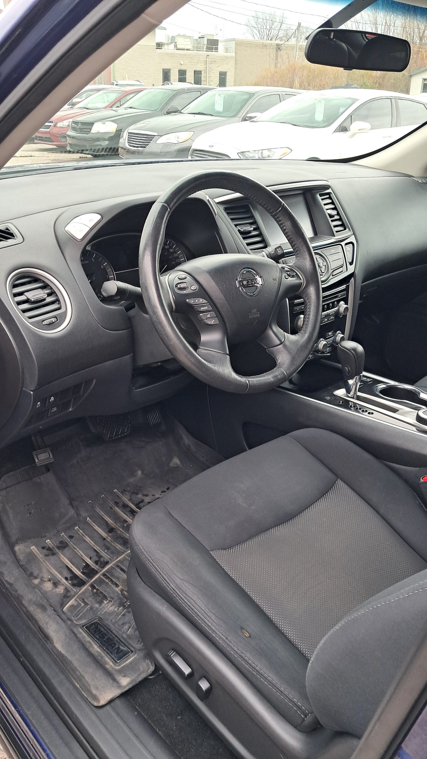 7 Passengers, AWD , 2017 Nissan Pathfinder SV Package , 3.5 liters , 6 cylinders engine. Automatic transmission, power door locks, power windows, tilt wheels, cruise control, blue tooth technology , usp connection, rear view camera , parking sensors, power seat, heated seats, dual climate control, cast wheels, Finished in blue exterior, and black cloth interior .